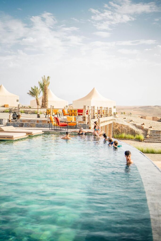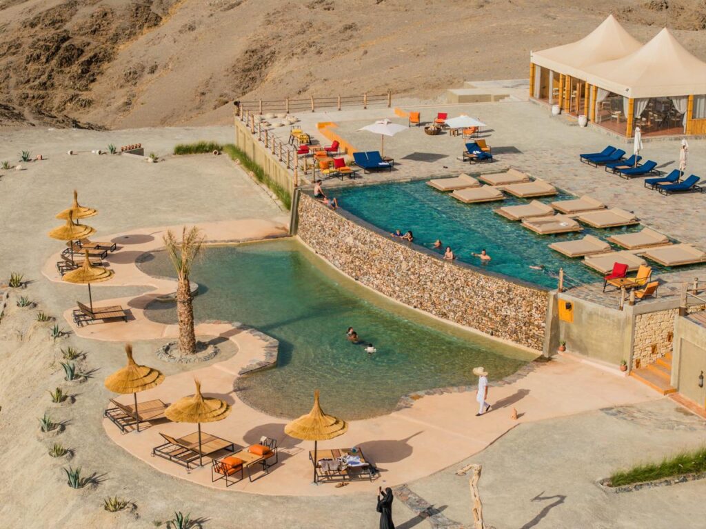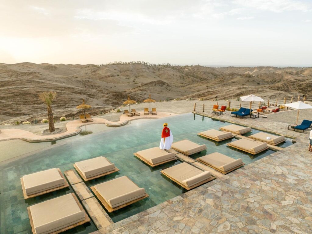 Un refuge d’exception au cœur du désert d’Agafay. Entre montagnes et dunes dorées, profitez d’un cadre magique pour vous évader. The Seven Saints vous invite à vivre une expérience unique : coucher de soleil spectaculaire, dîner sous les étoiles et hospitalité marocaine raffinée.