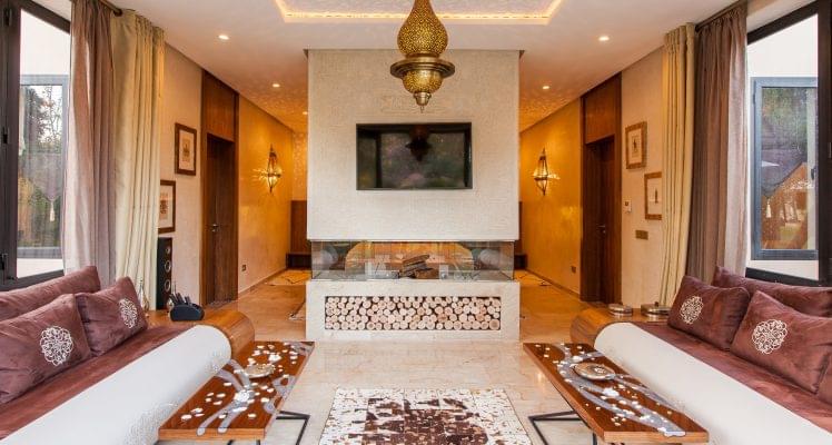 À quelques mètres du Palais Rhoul & Spa, la Villa Rhoul est un espace totalement indépendant et privé. La Villa est une résidence exceptionnelle avec une porte monumentale en chêne sculpté flanquée de deux bastions. L’ensemble est meublé uniquement avec des œuvres d’art : bronzes et Bouddhas de Thaïlande, statues d’Afrique, tableaux orientalistes, taffetas et vraies soies, plaids de cachemire cousus de plumes d’autruche … Chaque petit détail a été pensé dans un esprit de distinction. Composé de 4 suites au rez-de-chaussée et d’une suite royale au premier étage qui occupe une superficie de 130 m2, doublée d’une terrasse de 100 m2, la Villa Rhoul est l’endroit idéal pour célébrer un mariage en toute intimité.